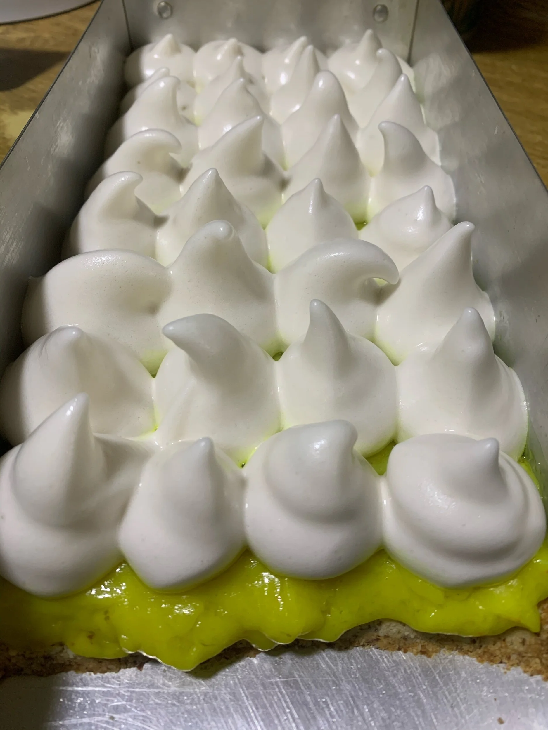 Una vez firme, colocar en una manga y manguear encima de la crema de limón que habíamos hecho en el paso anterior.