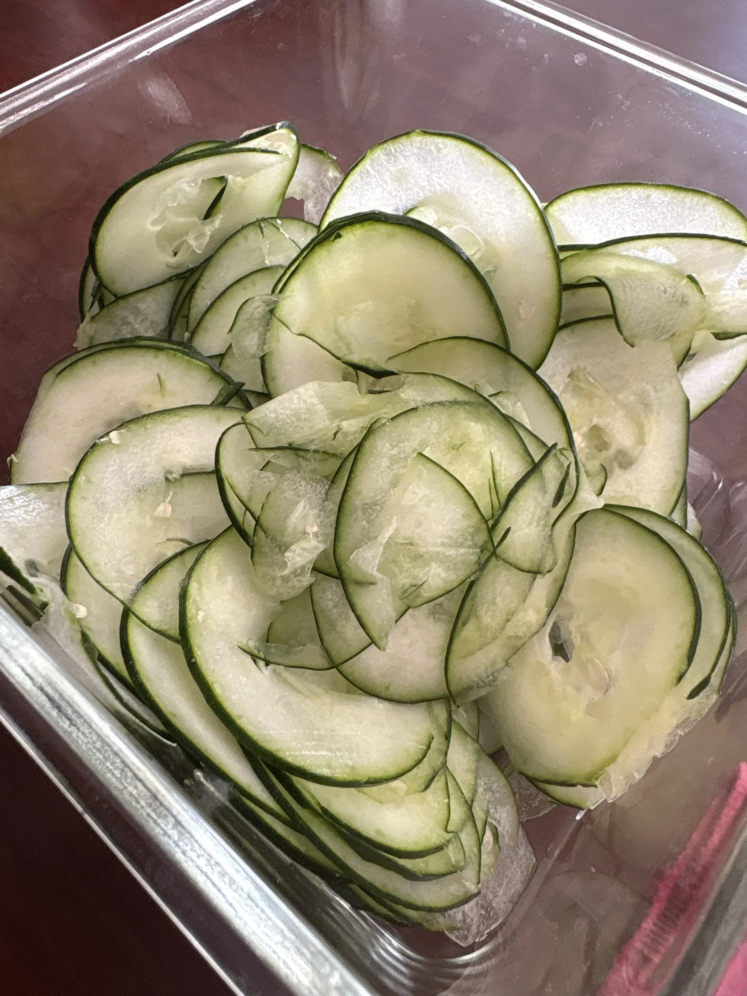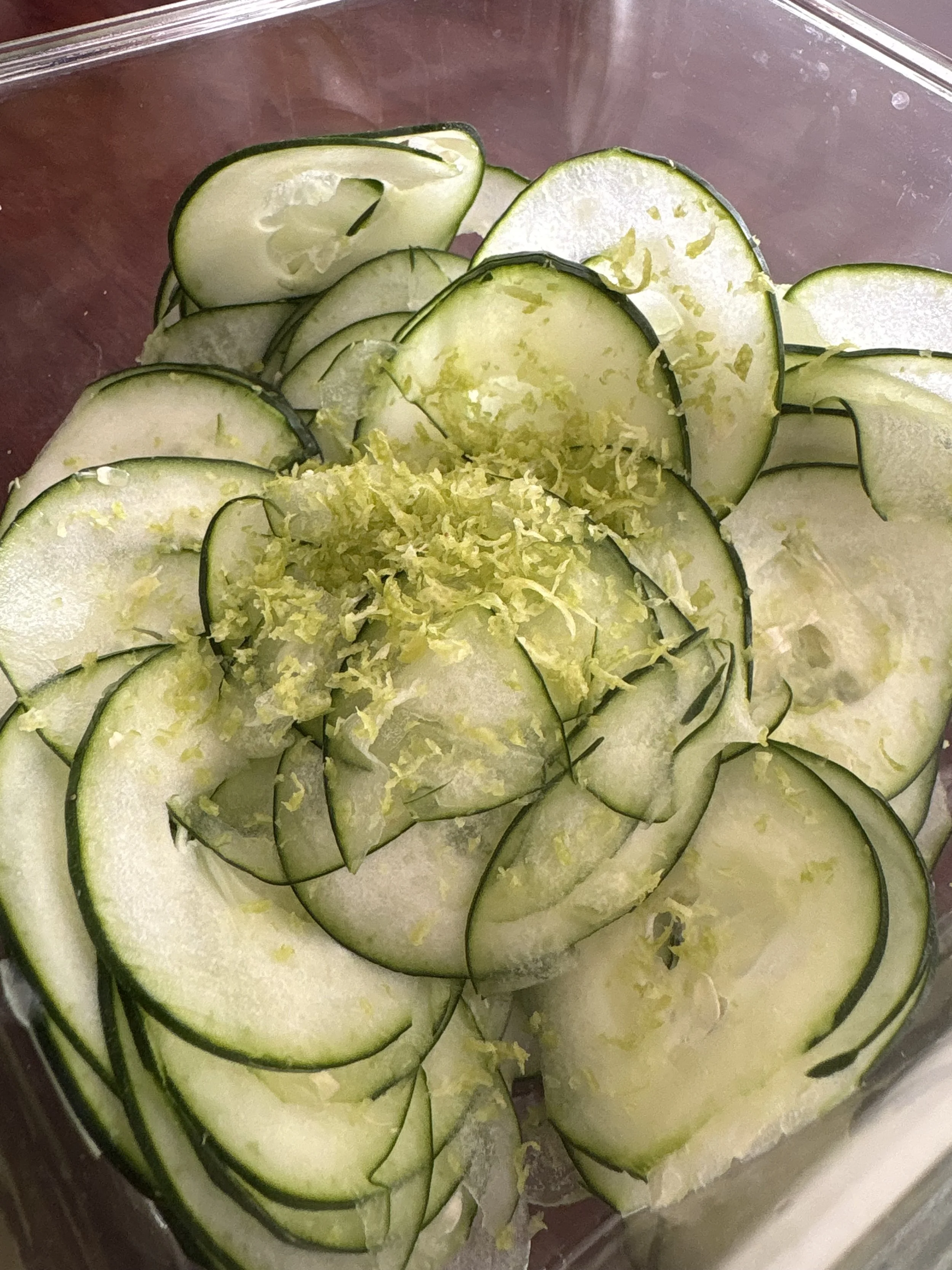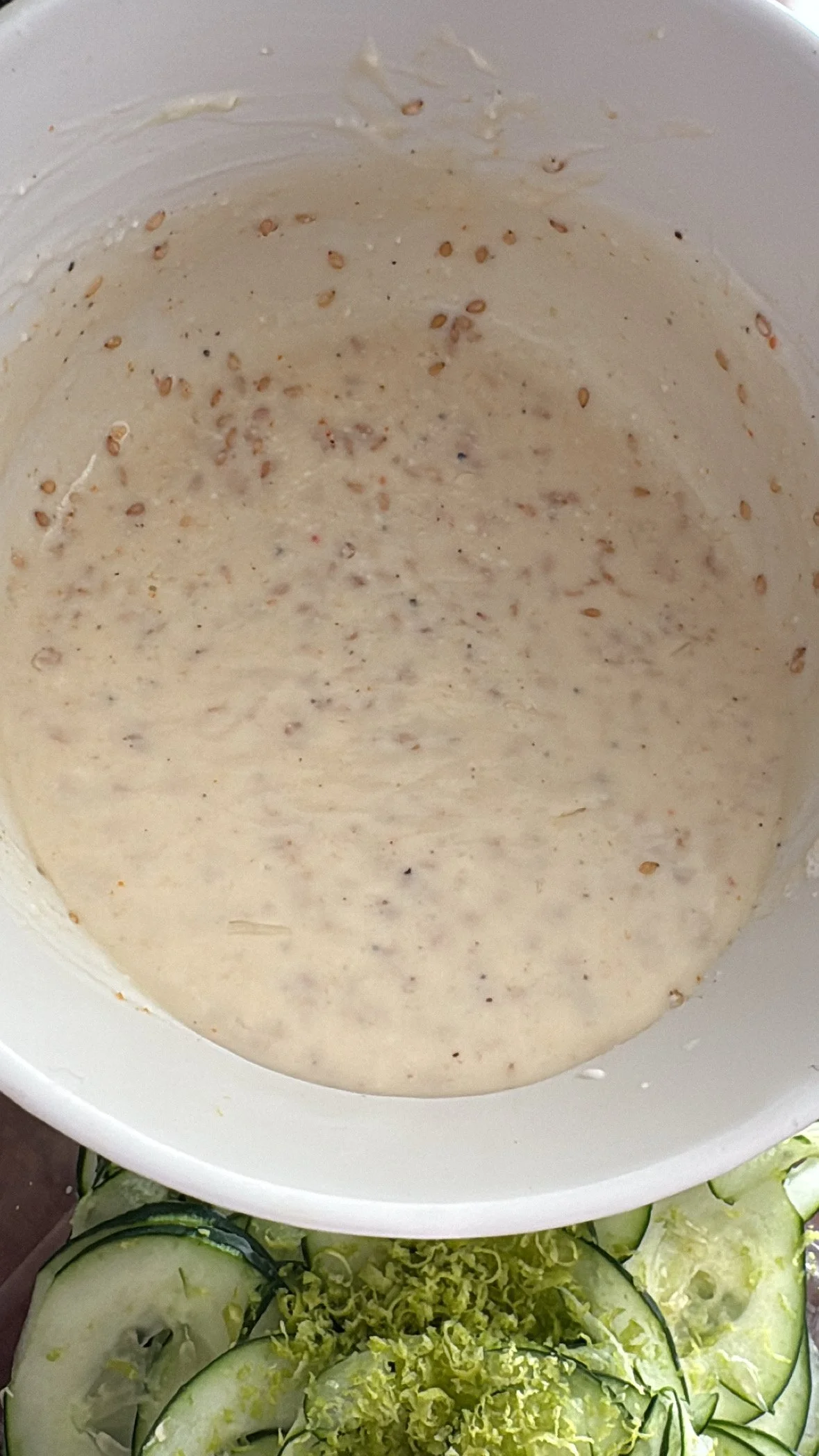 5. En la fuente del pepino agregar la salsa y remover para que la salsa cubra todas las laminas de pepino.